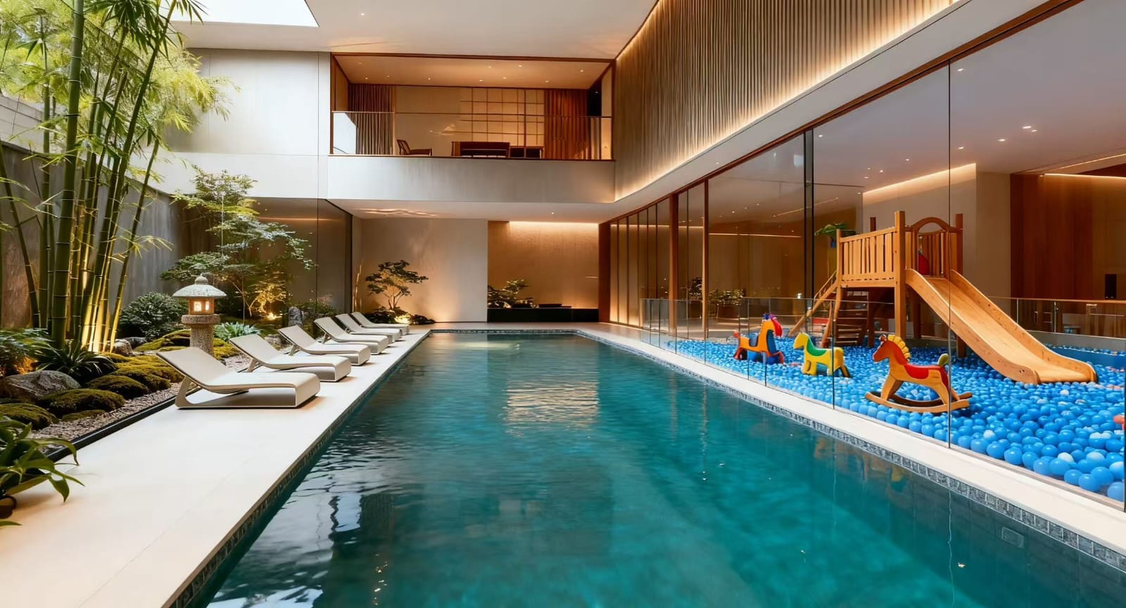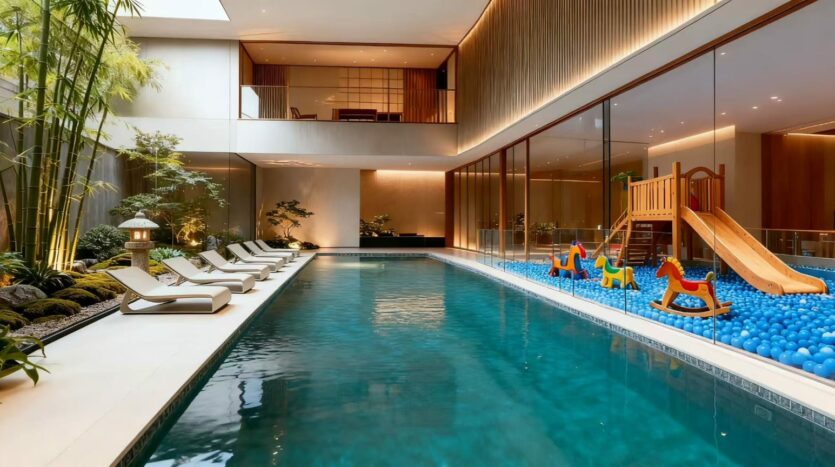 - Large swimming pool for residents.